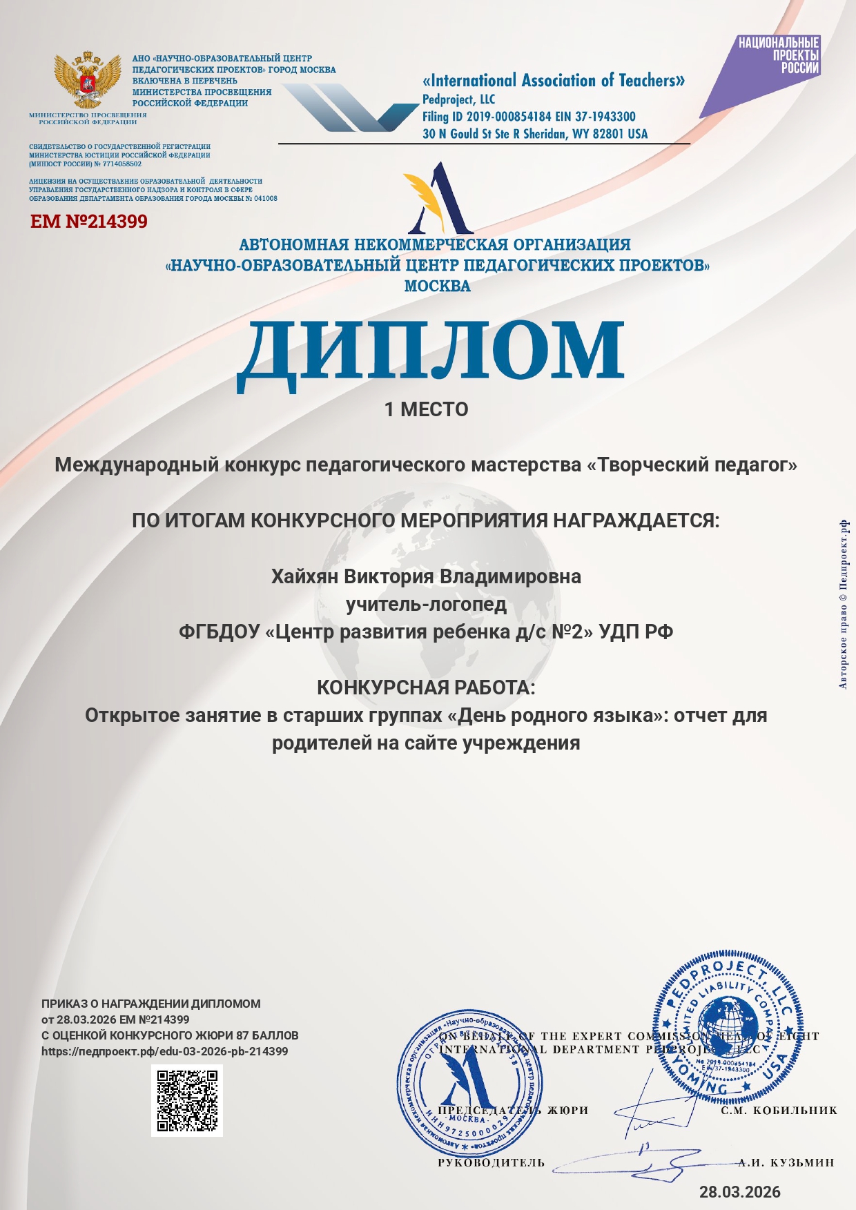 Научно-образовательный центр педагогических проектов. Всероссийский конкурс "Конспект логопедического занятия по ФГОС", в рамках реализации приоритетного национального проекта Образования.